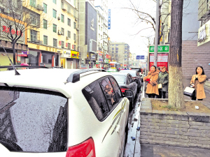 近日,記者在安康城區(qū)觀察發(fā)現(xiàn),大橋路、東大街、江北大道、育才路等路段,機動車占道現(xiàn)象非常嚴(yán)重,公交車??空镜能囄槐凰郊臆囯S意占用,導(dǎo)致公交車無法進站,只能??吭谥鞲傻郎?,人行道盲道也被車輛堵塞,不僅影響道路交通、市容市貌,還存在安全隱患,給市民出行帶來很大不便,希望相關(guān)部門加大整治力度。記者 寇峰 魏濤 攝?