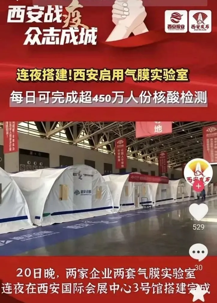 近日,短視頻平臺(tái)有網(wǎng)民發(fā)視頻稱“西安國際會(huì)展中心正在建方艙醫(yī)院”,經(jīng)核實(shí),該信息為謠言,實(shí)為“迪安雷迪”氣膜實(shí)驗(yàn)室,用于核酸檢測(cè)工作。