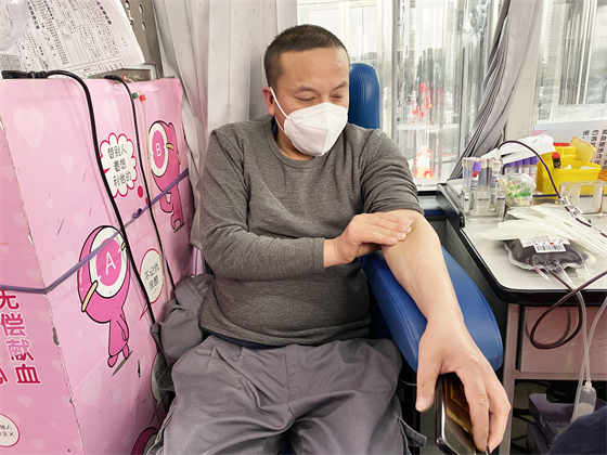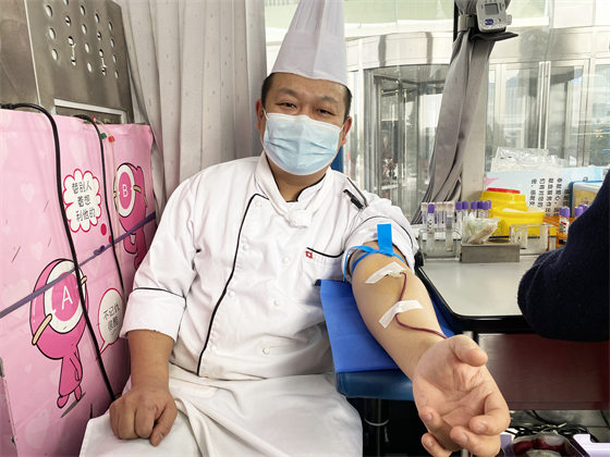 酒店廚師長(zhǎng)段斌已經(jīng)是第五次進(jìn)行無(wú)償獻(xiàn)血了,他說(shuō),希望大家在身體條件允許的情況下,捐獻(xiàn)熱血、溫暖他人。
