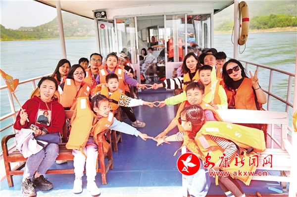 游客抵達(dá)瀛湖景區(qū),在工作人員的疏導(dǎo)下,有序登船,穿好救生衣后,向著碧波漣漪、白云萬里進(jìn)發(fā),這樣游湖,就是一幅絕美的畫卷。