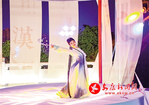 還未走近安瀾樓,就被一首琵琶曲改編的絲竹樂曲《春江花月夜》吸引,流暢多變的節(jié)奏,巧妙細膩的配器,絲絲入扣的演奏,仿佛將觀眾帶入那個月夜春江的迷人景色。環(huán)繞安瀾樓四周,畫家楊炳昌筆下的金州八景,仿佛一秒穿越古今,勝景徐徐、浮現(xiàn)腦際。