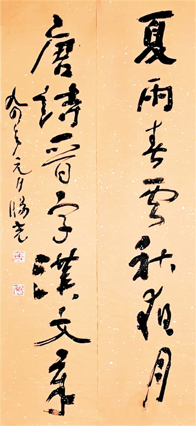 縱觀劉旸光先生的作品,其正楷筆致遒勁、骨肉停勻深諳晉唐書理;所做隸書,結體開張、筆意瀟灑、饒有“石門”的遺意;其草書氣機暢達、空靈疏朗、暗合明人意趣,而篆書則變化多端、垂腳舒展、顧盼自然,大有周秦風韻。在騰挪跌宕的線條構筑的黑白空間,捕捉轉瞬即逝的靈感。他的作品意在筆先,胸有成竹,中側鋒并用信手揮灑,一氣呵成,筆墨酣暢、淋漓盡致,如入無人之境,觀賞先生作書簡直是超然于物外的享受。