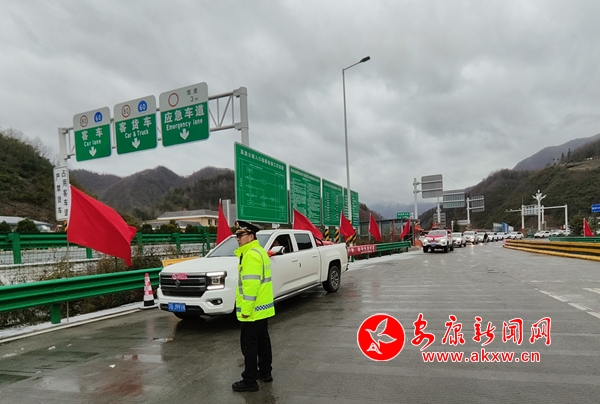 本網(wǎng)訊(楊明海 張旭)2月21日,因降雪結(jié)冰,安康境內(nèi)多條高速臨時性交通管制。在安(康)來(鳳)高速平(利)鎮(zhèn)(坪)段鐘寶收費(fèi)站外廣場,一支迎親車隊(duì)被滯留,陜西交控安平分公司鎮(zhèn)坪管理所緊急相助,為新人打通“幸福路”。