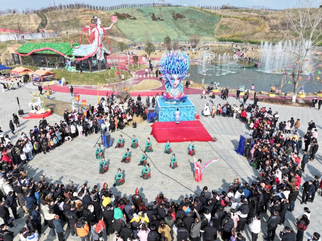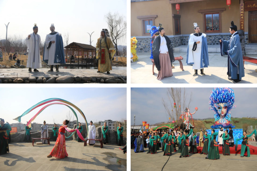 豐收大秧歌、龍騰腰鼓隊、喜慶蓮響、彩船、花轎大聯(lián)歡、社火、小場子戲等精彩的傳統(tǒng)民俗節(jié)目在桃花源相繼上演。新穎的編排、精彩的表演,令現(xiàn)場游客大飽眼福,叫好聲、喝彩聲此起彼伏。當天近25000余名市民游客前往桃花源觀看表演、打卡游園,處處洋溢著“歡歡喜喜過大年”的節(jié)日氣氛。