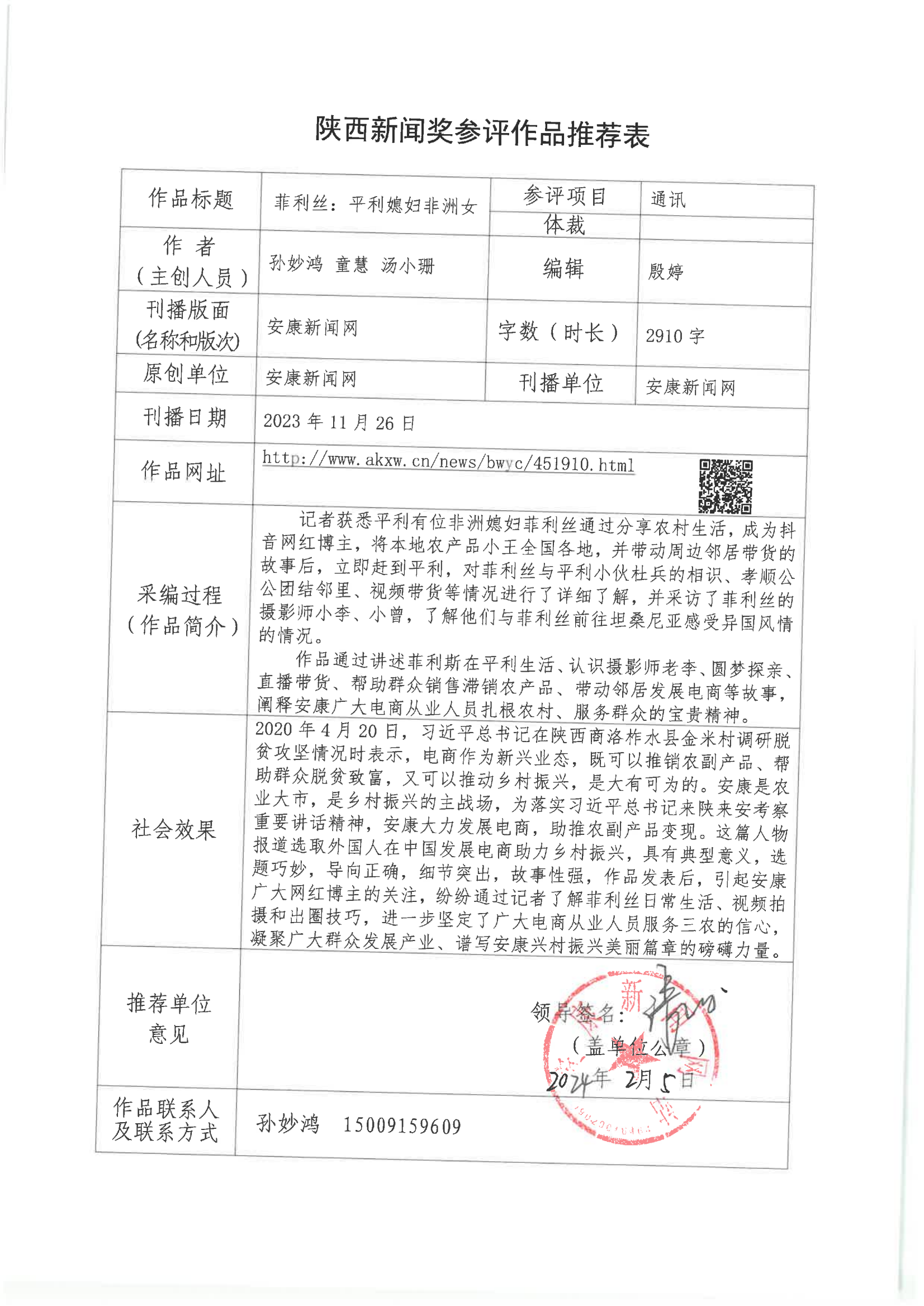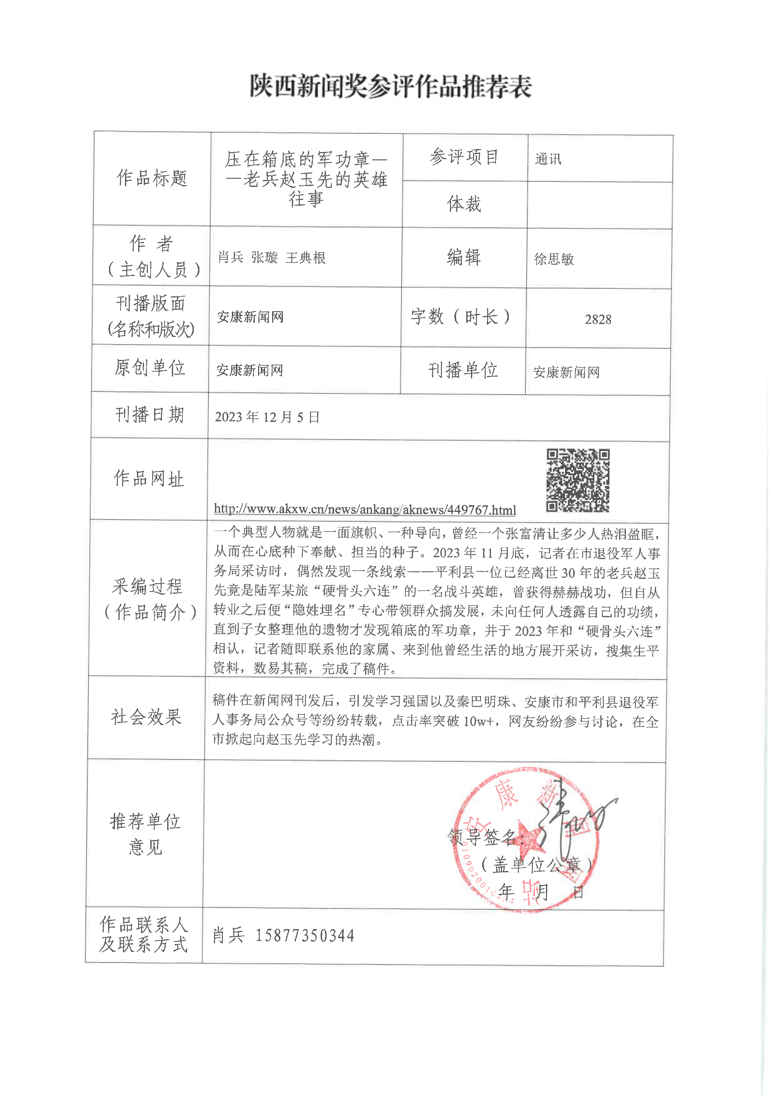 經(jīng)過1月30日編委會推薦、社黨委研究決定,擬推薦以下4件新聞作品參評2023年度“陜西新聞獎(jiǎng)”。公示時(shí)間從2024年3月6日至2024年3月12日,公示期為5個(gè)工作日。如有不同意見,請向安康日報(bào)社機(jī)關(guān)紀(jì)委、新聞管理部反映。