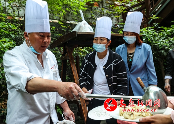但隨著時(shí)代的發(fā)展,人們消費(fèi)理念的更新,能制作傳統(tǒng)白河“三點(diǎn)水”宴席的人越來(lái)越少,偌大一個(gè)縣,找不出幾個(gè)能夠獨(dú)當(dāng)一面制作傳統(tǒng)宴席白河“三點(diǎn)水”的廚師。所以他毅然決定辭去高薪的主廚工作,奔走于鄉(xiāng)村,上門做家政服務(wù),在實(shí)地操作技藝中傳幫帶一批會(huì)制作白河“三點(diǎn)水”宴席的鄉(xiāng)廚。