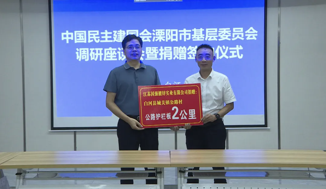 在座談會上,民建溧陽基層委員會向白河慈善協(xié)會捐贈5萬元幫扶資金,會員企業(yè)江蘇國強(qiáng)鍍鋅實業(yè)有限公司為城關(guān)鎮(zhèn)公路村捐贈了全長2公里的公路護(hù)欄板,會員企業(yè)溧陽暢享互聯(lián)網(wǎng)科技有限公司與白河縣電子商務(wù)公共服務(wù)中心簽訂了戰(zhàn)略合作協(xié)議。