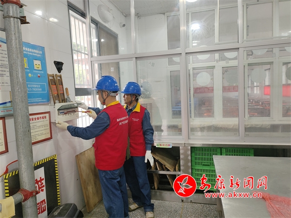 在白河縣冷水鎮(zhèn)中心小學,工作人員仔細檢查校園用電設備情況,由于暑假期間學校用電設施大多處于閑置負荷狀態(tài),加上高溫、暴雨等天氣影響,存在諸多安全用電隱患。工作人員重點對教室、辦公室、食堂等場所的供電設備進行“把脈問診”,并對這些區(qū)域的開關插座進行試用,確保用電無憂。