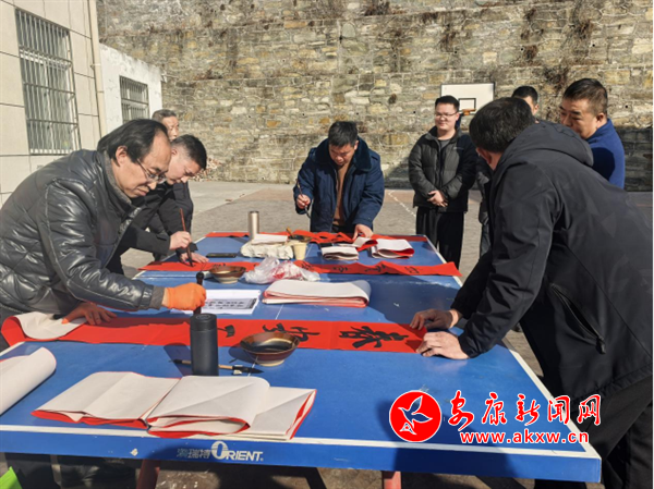 1月20日,旬陽市司法局、旬陽市文聯(lián)、旬陽市書法協(xié)會(huì)、旬陽市楹聯(lián)學(xué)會(huì)組織書法家,走進(jìn)銅錢關(guān)鎮(zhèn),為廣大群眾義寫蛇年喜慶春聯(lián),獻(xiàn)上新春祝福?;顒?dòng)現(xiàn)場(chǎng),書案一字排開,書法家們揮毫潑墨,以“?!弊钟麻_筆,行、隸、楷等多種筆體各顯神韻。此次活動(dòng)義寫春聯(lián)及福字500余幅,為現(xiàn)場(chǎng)群眾送去一份別有新意的新春禮物和美好祝愿。(通訊員 石佩)?