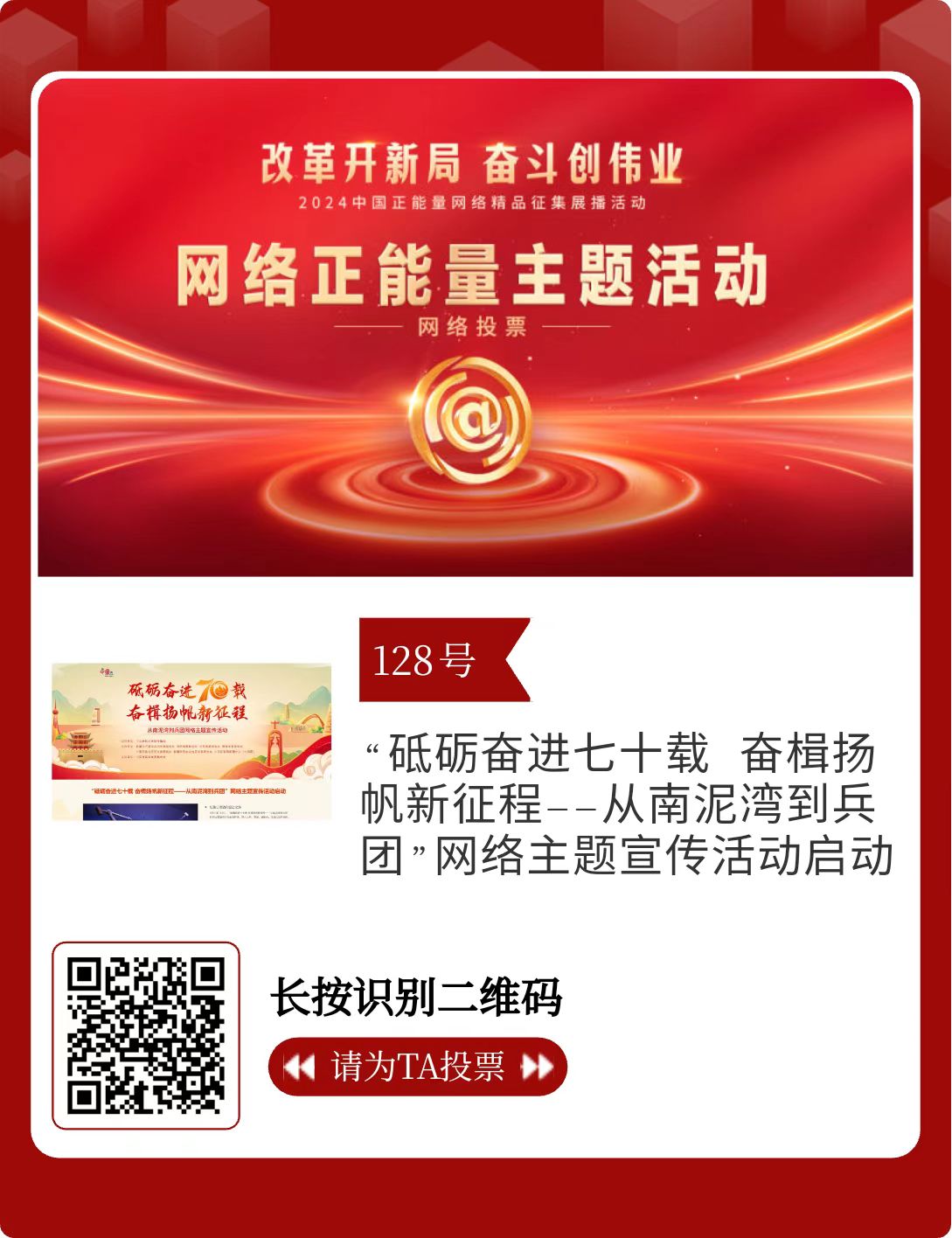 128.“砥礪奮進(jìn)七十載 奮楫揚(yáng)帆新征程——從南泥灣到兵團(tuán)”網(wǎng)絡(luò)主題宣傳活動啟動