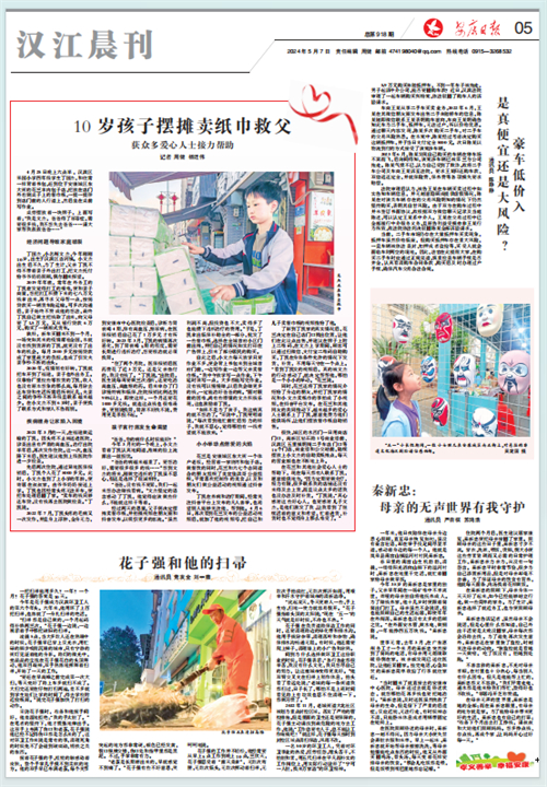 (2024年5月7日安康日?qǐng)?bào)05版“10歲孩子擺攤賣紙巾救父 獲眾多愛心人士接力幫助”)