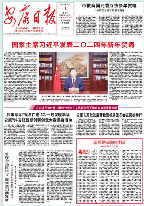 (2024年1月1日安康日?qǐng)?bào)01版“幸福是安康的注腳——本報(bào)元旦獻(xiàn)詞”)