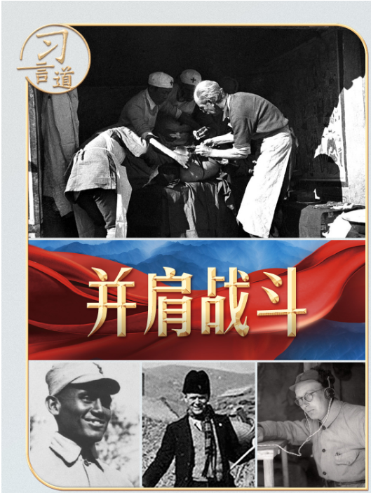 印度醫(yī)生柯棣華、法國醫(yī)生貝熙葉、德國人約翰·拉貝、丹麥人辛德貝格、英國人林邁可、國際主義戰(zhàn)士漢斯·希伯、蘇聯(lián)飛行大隊(duì)長(zhǎng)庫里申科、美國“飛虎隊(duì)”......他們的事跡,習(xí)近平總書記曾多次動(dòng)情講述。總書記還在國內(nèi)外重要場(chǎng)合為曾幫助和支持中國抗戰(zhàn)的國際友人頒獎(jiǎng),向他們致敬。