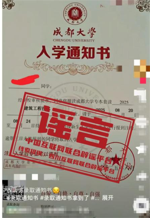 教育部多次提醒,部分機構和個人打著普通高等學歷教育幌子,實際卻為自考助學、網(wǎng)絡教育等其他教育形式,或進行虛假宣傳。如未通過高考招生錄取獲得正式通知書,無法注冊普通高校正式學籍,也無法取得普通高等學校學歷證書??忌凹议L應通過正規(guī)渠道核驗錄取信息,嚴格保護個人信息,防止被不法分子利用。(來源:四川互聯(lián)網(wǎng)舉報辟謠平臺、成都網(wǎng)絡辟謠)