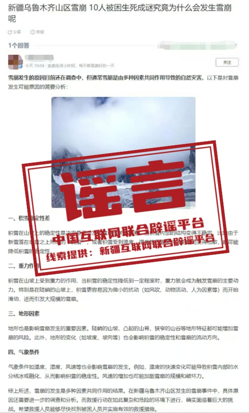 謠言:烏魯木齊山區(qū)發(fā)生雪崩,10人被困生死成謎?