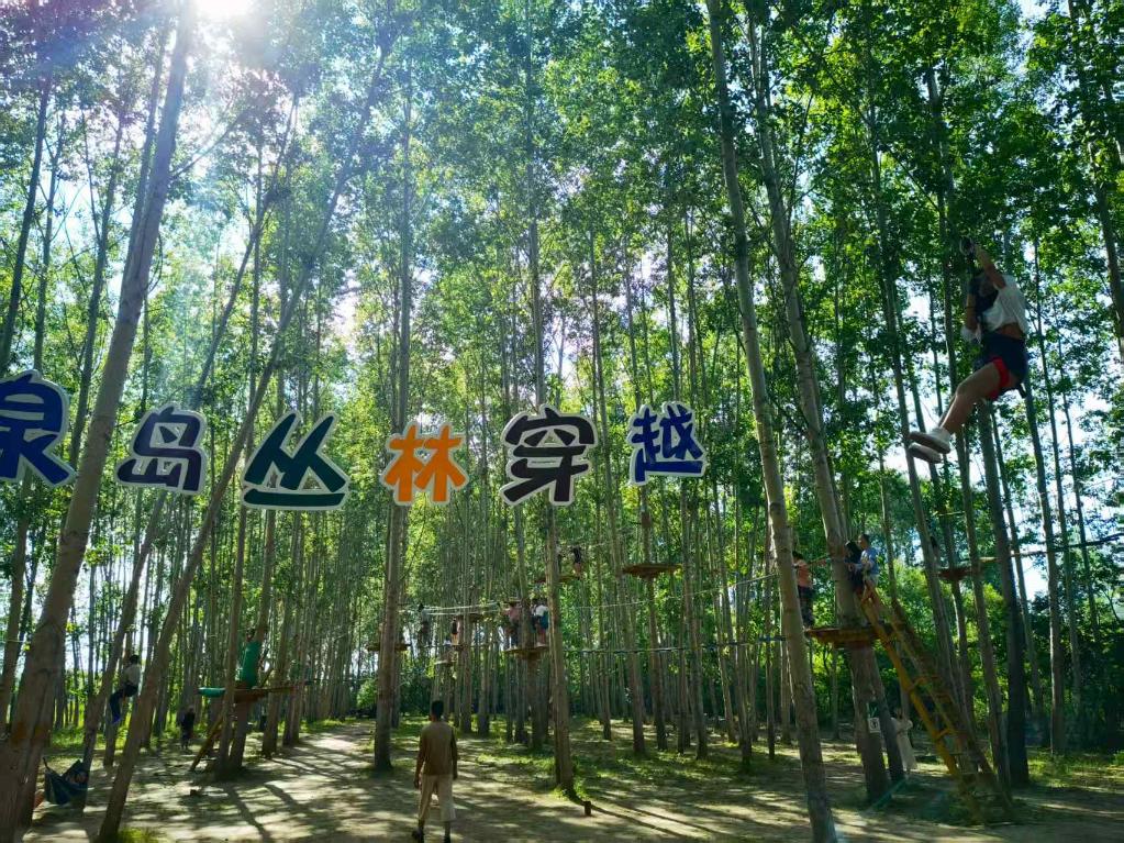 游客在小朱家村的龍泉島度假村體驗(yàn)叢林穿越。(受訪者提供)