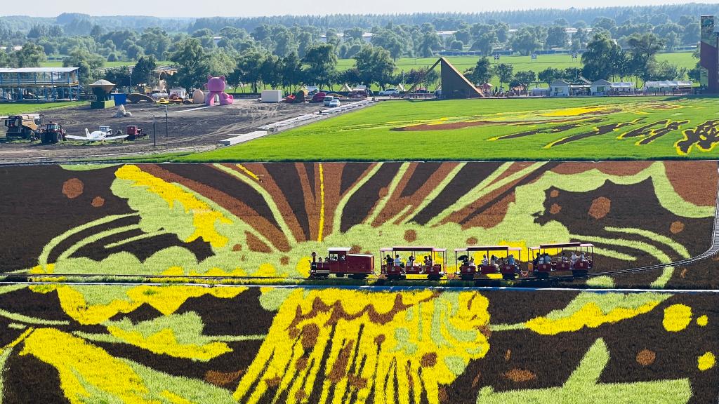 在北大荒集團(tuán)閆家崗農(nóng)場的“藝術(shù)稻田”里,6幅稻田畫在165畝稻田中徐徐展開——冰雪畫卷盡顯百年冰城魅力,四季生態(tài)畫卷演繹著四季浪漫;萌寵卡皮巴拉,傳遞出平靜與治愈的力量;后羿射日、女媧補(bǔ)天、神筆馬良這些經(jīng)典神話在稻田中煥發(fā)新生,與多彩的稻浪共同演繹著中華文明的永恒魅力。100多公里外,北大荒集團(tuán)四方山農(nóng)場的玉米田,青紗帳漸染金黃,工作人員張昊正遙控?zé)o人機(jī),巡航監(jiān)測作物成熟度,科技與傳統(tǒng)在此刻共舞。