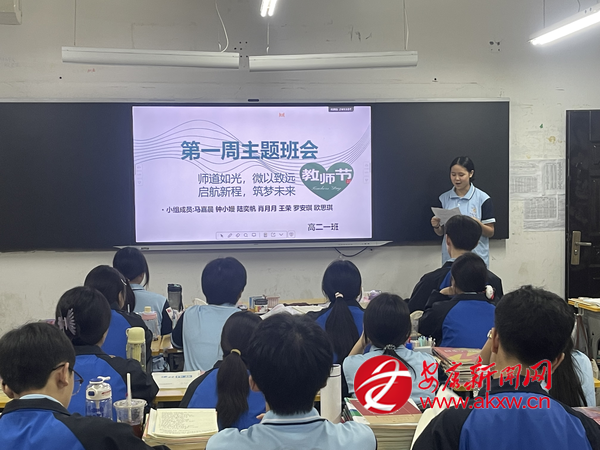 在主題班會上,各班以視頻短片和點滴故事再現(xiàn)了師生之間的感人瞬間,學校還通過LED亮燈、更換宣傳欄等方式,宣傳優(yōu)秀教師的奮斗足跡和崇高精神。學生會自發(fā)制作教師節(jié)宣傳視頻,并在廣播站播發(fā)致敬教師的文章,號召全體學生要尊重老師、感恩老師、理解老師,自立自強、充實學識、增強本領,長大后回饋社會、報效國家。