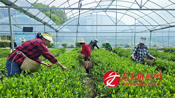 在胡家溝村康聚龍農(nóng)業(yè)開發(fā)有限公司,40余畝高標(biāo)準(zhǔn)聯(lián)動茶葉大棚令人眼前一亮?!巴ㄟ^控制大棚內(nèi)溫度、濕度、光照和空氣質(zhì)量等因素,我們有效保障了茶葉生長環(huán)境,使茶葉品質(zhì)更加穩(wěn)定。”公司技術(shù)負(fù)責(zé)人介紹,“這種大棚還能有效縮短茶葉生長周期,實(shí)現(xiàn)茶芽早發(fā),從而提早20天上市,大大提高經(jīng)濟(jì)效益。”