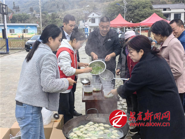 在廣場(chǎng)邊的臨時(shí)爐灶上,村“四支隊(duì)伍”人員分工協(xié)作,一起為老人們包著餃子。當(dāng)熱氣騰騰的餃子端上桌,老人們的臉上洋溢著幸福笑容。餐后的政策宣講環(huán)節(jié)干貨滿(mǎn)滿(mǎn),村工作人員用通俗語(yǔ)言講解城鄉(xiāng)合作醫(yī)療收繳標(biāo)準(zhǔn)與報(bào)銷(xiāo)流程,結(jié)合老年群體常見(jiàn)病種舉例說(shuō)明,現(xiàn)場(chǎng)為3位老人完成繳費(fèi)登記。