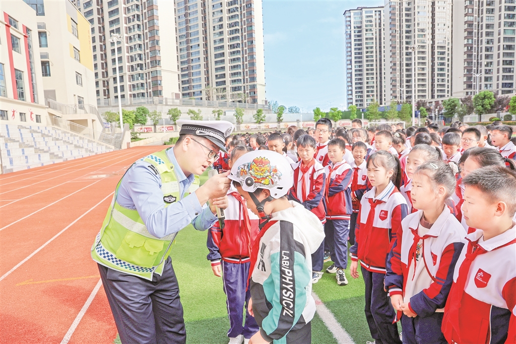 活動(dòng)期間,安康高新區(qū)聚焦“教育一個(gè)孩子、帶動(dòng)一個(gè)家庭、影響整個(gè)社會(huì)”的目標(biāo),精準(zhǔn)部署七大重點(diǎn)任務(wù),構(gòu)建起全方位、多層次的交通安全宣傳教育體系。各中小學(xué)、幼兒園通過發(fā)放《“我勸媽媽戴頭盔”倡議書》,組織學(xué)生與家長共同學(xué)習(xí)頭盔佩戴的重要性及相關(guān)法規(guī),讓安全理念從校園傳遞至每個(gè)家庭。同時(shí),邀請交警化身“安全教師”走進(jìn)校園,通過專題講座、警示影片播放、事故案例剖析、頭盔正確佩戴示范、實(shí)景演練、有獎(jiǎng)問答等豐富形式授課,將“戴頭盔就是戴安全”的理念深植學(xué)生心中,累計(jì)覆蓋師生萬余人次。此外,活動(dòng)還鼓勵(lì)學(xué)生完成一項(xiàng)特殊“家庭作業(yè)”——擔(dān)任“家庭交通安全監(jiān)督員”,這也成為活動(dòng)一大亮點(diǎn)。學(xué)生們主動(dòng)承擔(dān)監(jiān)督責(zé)任,每日提醒家人規(guī)范佩戴頭盔,還通過照片、視頻、文字等形式記錄勸導(dǎo)過程與心得,讓文明出行習(xí)慣在親子互動(dòng)中自然養(yǎng)成。