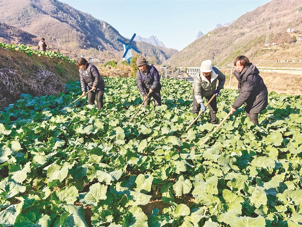 1月12日,走進嵐皋縣城關(guān)鎮(zhèn)水田村的油菜種植基地,只見山坡下連片的油菜長勢喜人,綠油油地鋪滿了一地,成了冬日里一道別樣的風(fēng)景。62歲的屈天青和妻子正在地里忙著除草,看著地里的壯碩油菜,臉上笑意盈盈。