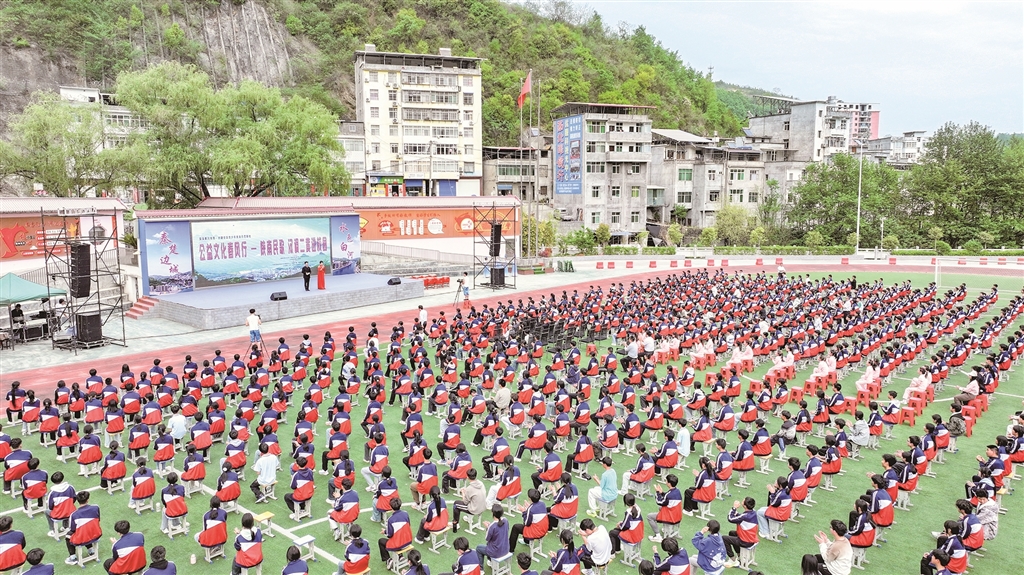 展演現(xiàn)場(chǎng),紫陽(yáng)小學(xué)學(xué)生帶來的民歌聯(lián)唱《童聲唱紫陽(yáng)》贏得滿堂喝彩。孩子們用清亮的嗓音演繹《開山歌》《三月三上茶山》《螃蟹歌》等經(jīng)典陜南民歌,悠揚(yáng)婉轉(zhuǎn)的旋律中透著童真童趣,將地域文化的獨(dú)特韻味展現(xiàn)得淋漓盡致?!斑@首歌是奶奶教我唱的,現(xiàn)在我在學(xué)校社團(tuán)里學(xué)會(huì)了更多唱法?!敝鞒獙W(xué)生鄧可唯說,通過美育課程,她不僅學(xué)會(huì)了唱歌,還了解了民歌背后的民俗故事。