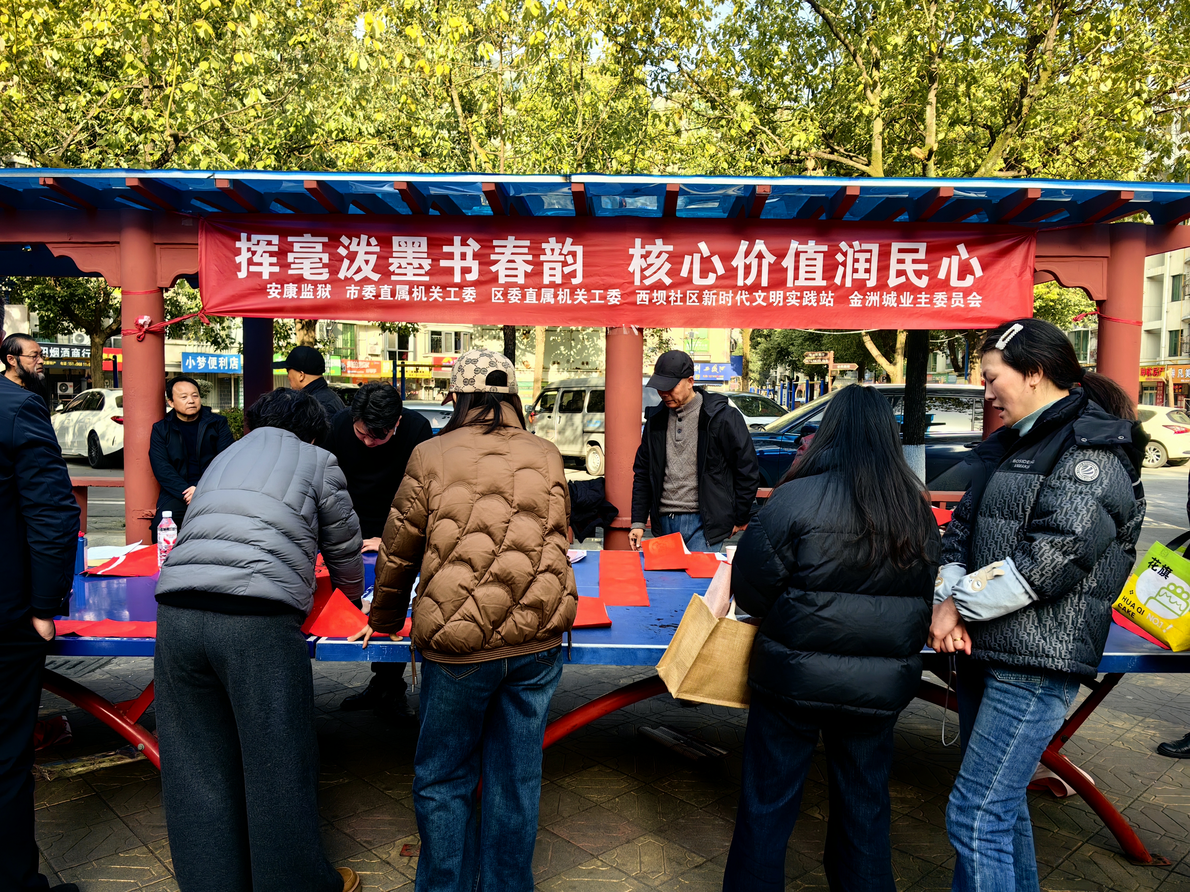 2月2日下午,安康監(jiān)獄、市委直屬機(jī)關(guān)工委、區(qū)委直屬機(jī)關(guān)工委、漢濱區(qū)西壩社區(qū)新時(shí)代文明實(shí)踐站組織市區(qū)書法家在金洲城小區(qū)為群眾義寫春聯(lián)。 鄭時(shí)根 攝