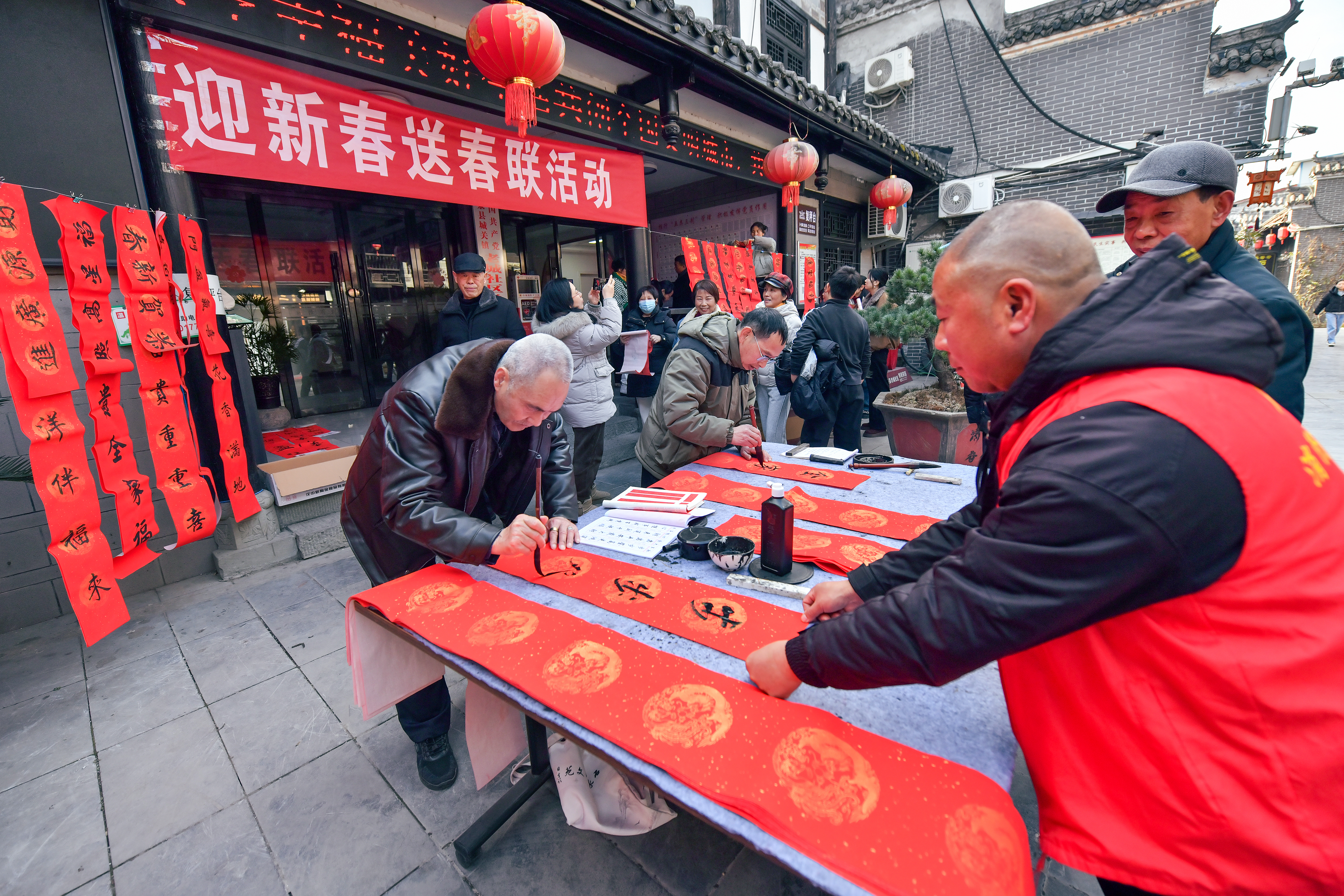 2月2日,石泉縣城關(guān)鎮(zhèn)老城社區(qū)新時(shí)代文明實(shí)踐站組織開展義寫春聯(lián)活動(dòng)。書法愛(ài)好者現(xiàn)場(chǎng)揮毫,為居民送上新春祝福。活動(dòng)共送出春聯(lián)200余副。董長(zhǎng)松 攝