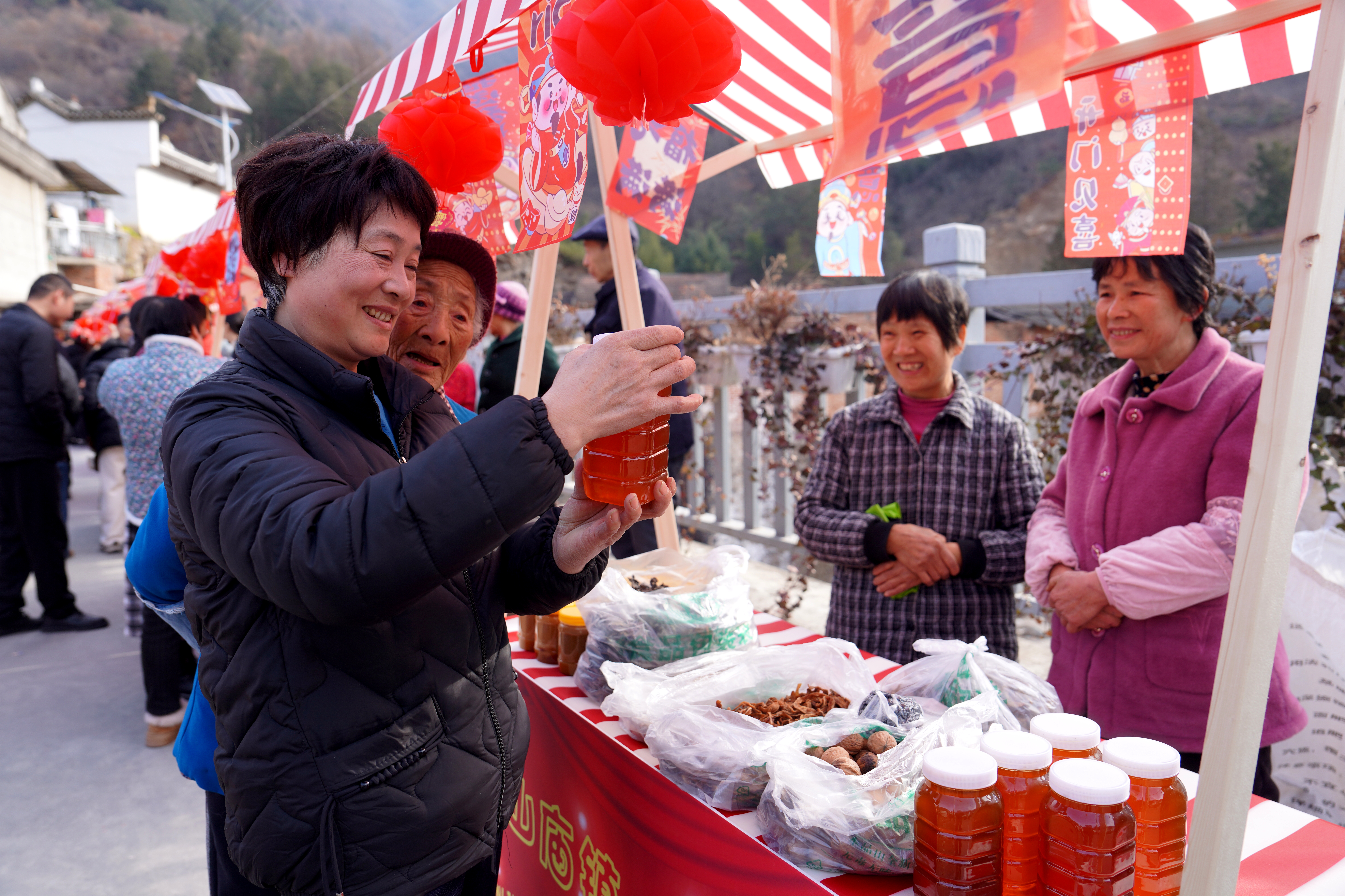 2月5日,寧陜縣太山廟鎮(zhèn)舉辦山貨大集。集市上,蜂蜜、木耳、香菇、臘肉等山貨琳瑯滿目。本次活動不僅營造出喜慶的節(jié)日氛圍,也為當?shù)貎?yōu)質山貨搭建了產銷平臺。(程揚 攝)