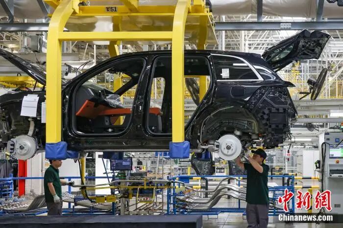 資料圖:位于江蘇常州的理想汽車智能制造基地生產(chǎn)車間內(nèi)的忙碌景象。中新社記者 泱波 攝